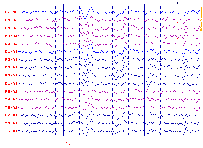 отведения: Fz - срединное лобное, F3, F4 - лобные, С3, С4 - центральные,
