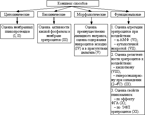 Разработанный нами комплекс способов дифференциальной диагностики указанных выше клинико-патогенетических вариантов БА позволяет оценить как различные мембранные структуры (глико-протеиды, липидный матрикс), так и функциональные свойства эритроцитов (агрегация, осмотическая резистентность). Каждый из описанных способов обладает определенными преимуществами и может быть применен в любом лечебно-профилактическом учреждении, причем не требуется дополнительного оснащения клинической лаборатории.