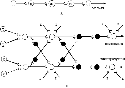 в модели (рис. 1б), конечный эффект, т.е. изменение активности