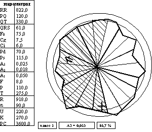На рисунке представлены примеры таких Lобразов состояния¦ в соответствии с вышеупомянутой классификацией. В течение часа можно определить специфическую реакцию больного на введенное лекарственное средство или на лечебную процедуру и выбрать строго индивидуальную тактику лечения. Особенно важна для врача простота считывания конечной информации, при которой трудно допустить ошибку в трактовке данных и которая гарантирует контроль со стороны врача Lработы¦ решающих правил. Это обеспечивает двойной эффект - точность и быстроту. Аппаратно-программный комплекс, реализующий полипараметрические методы, включает набор неинвазивных датчиков и электродов, блок усилителей с аналого-цифровым преобразователем и гальванической развязкой, персональный компьютер типа IBM с принтером.