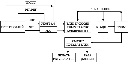 Целью настоящей работы явилось создание аппаратно-программного комплекса (АПК), обеспечивающего удовлетворительную помехозащищенность оборудования, высокую точность определения реографических показателей, а также позволяющего уменьшить трудоемкость анализа получаемой информации и провести унификацию полиреографических исследований человека.