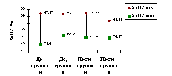 до курса ИГТ уровень максимального снижения SaO2 в