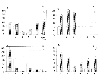 Проведенные исследования показали, что по мере обучения активно-оборонительному навыку результативность у крыс, в частности количество избеганий, возрастает во всех группах (рис. 2). Однако достоверно (p<0,05) более высокие значения по сравнению с контрольными группами наблюдались на 2-й и 3-й день обучения при введении RITLY и на 3-й день при введении нейротропина по критерию t-Стьюдента и за весь период обучения при факторном анализе. При введении интерлейкина-1b обнаружено достоверное (p<0,05) снижение количества избеганий на 2-й и 6-й дни обучения.
