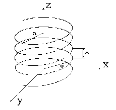 где Х и Y - координаты в сечении, перпендикулярном оси канала, Z - координата вдоль оси канала, а - радиус движения иона, - угол вращения иона вокруг оси канала, = / 2 - постоянная, равная шагу спирального движения иона , деленному на 2.