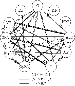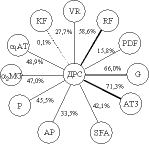 время рекальцификации плазмы (VR), концентрации фибриногена (KF),