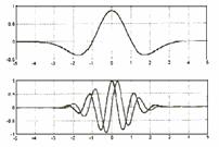 Рис. 1. Примеры вейвлетов. Сверху изображен вейвлет "сомбреро" (Mexican