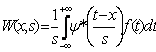 где t - ось времени, x - момент времени, s - параметр, обратный частоте (масштаб), a (*) - означает комплексно-сопряженное, f(t) - исследуемый сигнал, W(x, s) - результат вейвлет-преобразования для 2