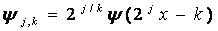 1, -n) и точки k. Масштабированные и смещенные версии материнского вейвлета: