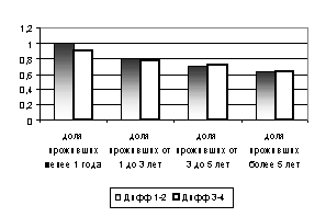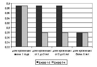 одинакова, в интервале от 1 до 5 лет выживаемость больных с дифференцировкой
