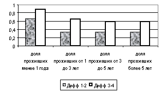 Рис. 7. Функция выживаемости в зависимости от характера роста