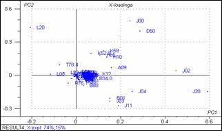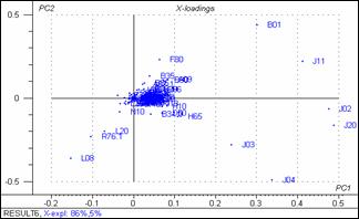 Графики счетов и нагрузок результатов анализа МГК для